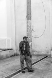 EL SALVADOR. Intipuca, La Union. 25 September, 2018. A day laborer awaiting for work on a street in Intipuca, a town known for the number of immigrants that now live in the United States. In Intipuca central square, Emigrants Park, boasts a monument to local farmer Sigfredo Chavez, who slung his backpack over his shoulder in 1967 and headed for the United States, becoming the first Intipucan to make the journey. Some 5.3 million Central American immigrants live in the United States, 2.9 million of them from El Salvador, a country of just 6.3 million people whose recent history has been blighted by civil war, gang violence, and economic struggles.