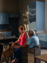 USA. Ocala, Florida. 2019. Cathy Gonzolaz (64) and Terry Allison...