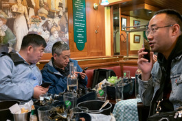 France. Paris. Magnum workshop for photographers from China. Editing photos during lunch in a restaurant. 2019