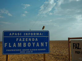BRAZIL. 2019. Entrance of the fazenda Flamboyant, a 800 acre propertu focused in corn and soy production. The owner, Sidnei Hübner arrived from the South 40 years ago looking for cheaper land to cultivate.