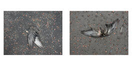 A dead pigeon on the ground next to Northumberland Street gates between Shankill and Falls areas, West Belfast.