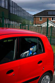 A car parked beside the Wall in Saint Gall’s Avenue, West Belfast.