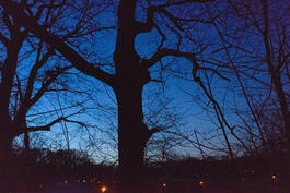 USA. Brooklyn, NY. 2017. Night Park with Raccoon. Prospect Park.