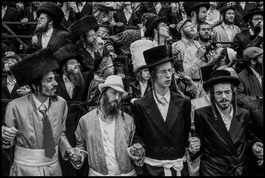 ISRAEL. Jerusalem. Orthodox Jews celebrate Purim, with heavy drinking, songs and dances, in the Mea Sharim neighbourhood.
