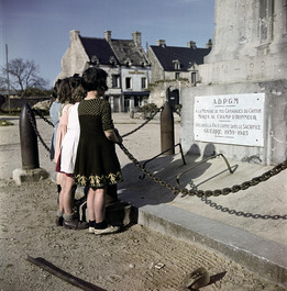 FRANCE. Montebourg. 1947. Children in front of a WWI memorial.