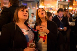 GB. England. London. 2016. Democrats abroard, the official Democratic Party arm for Americans living outside the US, at the Marylebone Sports Bar and Grill watch the US election unfold.