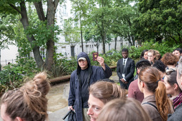 FRANCE, Paris, 2016/05. "Ticket", a spectacle about clandestine immigration at the Museum of the History of Immigration. Spectators, led by an actor playing a smuggler are involved in the play that partly takes place inside a truck, depicting the hours before the illegal passage of immigrants. "Collectif de Bonheur Brut", directed by Jack Souvant.
