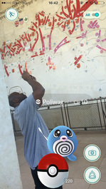 FRANCE, Normandy, 2016/08. Saint-Laurent-sur-mer. Omaha Beach. American War Cemetery. Pokemon Go at the WW2 sites.