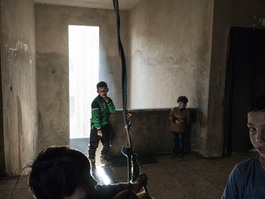 Sirya. Damascus. Februry 25th. Children play in a shelter for internally displaced people in Al Waer, on the outskirts of Homs,