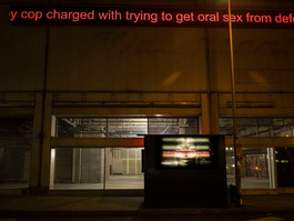 An electronic information bill board at the former building of the Philadelphia inquirer newspaper.