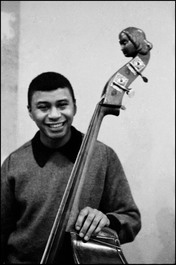 USA. 1958. Paul CHAMBERS at a recording session for Columbia records.