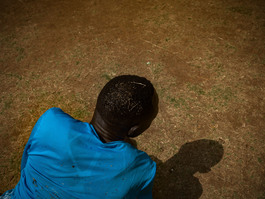 KENYA. 2016. Refugee athletes from South Sudan, preparing to take part in the Rio Olympics, practicing under the supervision of a trainer at the Tegla Camp for refugee athletes, near Nairobi.