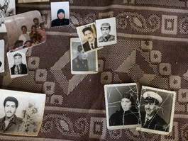JORDAN. 2016. Thaer Mohamed Hoshan, 45 and his wife Rana Ibrahim Al Sees, 34, both from Daraa. They arrived with their 4 children over three years ago. The kids Mohammed Barra, 16, Omayma (teenage girl), 14, Rebal, 12, Mohammed Iqbal, 10, Hudaifa, 8. When the arrived at Za'atari they just brought some of their possessions; their family photos and their identity papers.