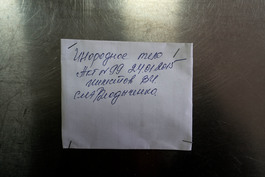 UKRAINE. Artemivsk. 2016. Near the frontline.Shrapnel in envelopes identifying civilian and military victims of the current conflict in Ukraine.