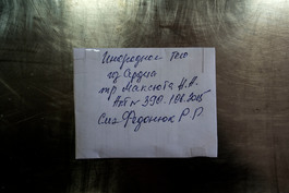 UKRAINE. Artemivsk. 2016. Near the frontline. Shrapnel in envelopes identifying civilian and military victims of the current conflict in Ukraine.