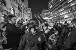 USA. Washington, D.C. January 19th, 2017. A demonstration outsude the National Press Club the night before Donald Trump's inauguration.