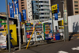 JAPAN. Tokyo. Bending Machines and Car parking, Akihabara. 2016.