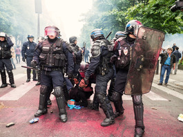 FRANCE. Paris. May 26, 2016. Protest against labour law "El Kohmry" from Bastille to Place de la Nation.