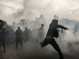 FRANCE. Paris. May 26, 2016. Protest against labour law "El Kohmry" from Bastille to Place de la Nation.