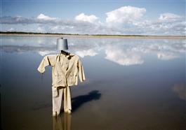 Alberta. A scarecrow left in tailings ponds to protect birds from noxious substances, 2005.