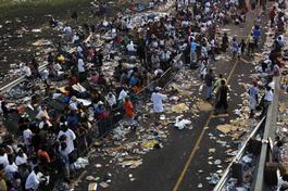 USA. New Orleans, Louisiana. September 2, 2005. Thousands of people wait for days under Interstate 10 to be evacuated.