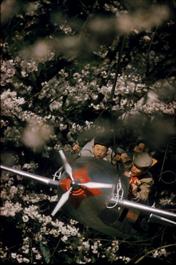 JAPAN. Nara. 1961. Carnival airplane ride in the midst of cherry blossoms.