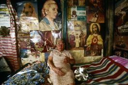 ARGENTINA. Buenos Aires. 1996. Florencia Lopez, an 81-year-old admirer of Evita Peron, with a collection of pictures in her shack in the barrio of San Fernando.