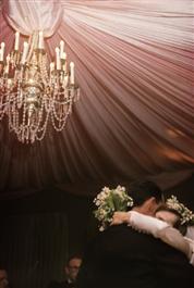 USA. 1966. Dancing under a chandelier at an affluent wedding...