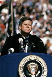 USA. California. Berkeley. 1962. John F. KENNEDY addresses a crowd at the University of California.