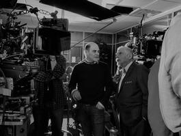 USA. Los Angeles. 2014. On the set of Mad Men during the filming of the 7th and final season. Show creator Matthew Weiner and actor Robert Morse.