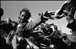 IRAQ. Kurdistan. 1991. Handing out bread in a refugee camp.