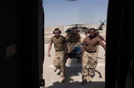 IRAQ. April 6, 2005. Near Tikrit/Samara, US FOB (Forward Operating Base) Speicher, Medevac. 1159th Medical Company flies Black Hawks evacuating injured US soldiers, Iraqi forces and civilians to the FOB Speicher Hospital and Balad Air Force Hospital.