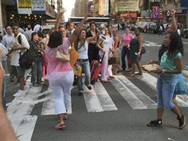 USA. New York City. June 13, 2005. Reaction to the Michael Jackson verdict in Times Square.