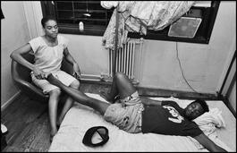 USA. New York City. 1986. Rap artist Justice with his girlfriend.