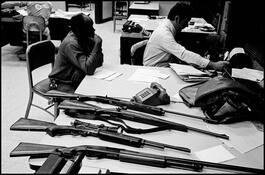 USA. New York City. 1979. A detective registers rifles confiscated...