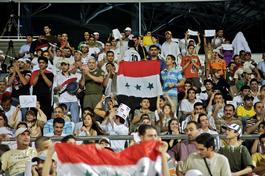 UNITED ARAB EMIRATES. Al Ain, Abu Dhabi. 2006. AL Ain Football Club hosting a match between Iraq and Palestine. Iraqi fans.