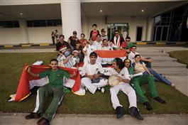 UNITED ARAB EMIRATES. Al Ain, Abu Dhabi. 2006. AL Ain Football Club hosting a match between Iraq and Palestine. Iraqi fans before the game.