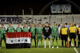 UNITED ARAB EMIRATES. Al Ain, Abu Dhabi. 2006. AL Ain Football Club hosting a match between Iraq and Palestine. Iraq team before the game
