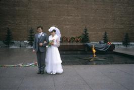 USSR. Moscow. 1989. Bridal couple and the Monument of the Unknown...