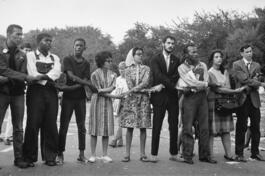 USA. Washington, D.C. August 28, 1963. Marian Wright EDELMAN (center, wearing scarf) and others during the March on Washington.
