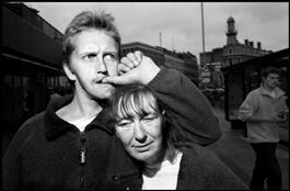 ENGLAND. London. King's Cross. Summer 2000. A couple outside...
