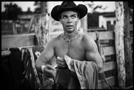 USA. New Jersey. Pilesgrove. 1999. Cowtown Rodeo. A cowboy prepares for his part in the rodeo.