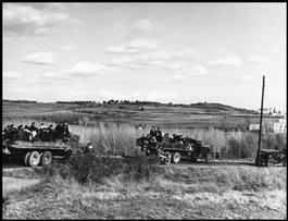 SPAIN. January 25-27, 1939. Trucks full of refugees on the road from Barcelona to the French border.