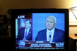 USA. New York City. September, 27 2008. Georgian President Mikheil SAAKASHVILI visits the United Nations. FOX TV.