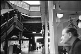 USA. Illinois. Chicago. 1963. Man smoking under the L train.
