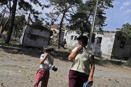 GEORGIA. Gori. August 16, 2008. Destruction from bombing, smell...