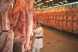 USA. Dakota City, Nebraska. 1991. Iowa Beef Packing is the world's largest beef and pork processor. Approximately 7.5 million cattle and 12.6 million pigs are slaughtered annually by IBP.