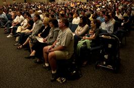 USA. Bentonville, Arkansas. 2004. Walmart Headquaters, Home Office. Traditional Saturday Morning 7 AM ritualised meeting between Managment under CEO Lee Scott and employees.
