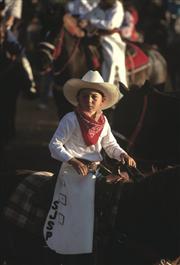 USA. Stamford. Texas. 1992. On the fourth of July weekend each year the city of Stamford, approximately forty miles north of Abilene, hosts an amateur rodeo competition called the "Texas Cowboy Reunion". The Grand Entry was most popular with the children.