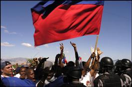 HAITI. Port-au-Prince. January 2004. Celebrations of 200 years of Independence and political unrest against President J.B. Aristide. After the departure of UN and U.S. troops in 1996, Haiti has fallen off the map. The poorest country in the Western hemisphere is ruled by the formerly highly-welcomed former priest and democratic leader, J.B. Aristide and his Lavalas movement. But since the 2000 election irregularities, a steadily growing middle and upper class opposition is demanding his departure. They are trying to interrupt the pompous celebrations to mark 200 years of Independence after a slave revolt against Napoleon made Haiti the first black republic. In often violent demonstrations, the opposition clashes with police, pro-Aristid Lavalas supporters and the gang-style irregulars "chimeres."